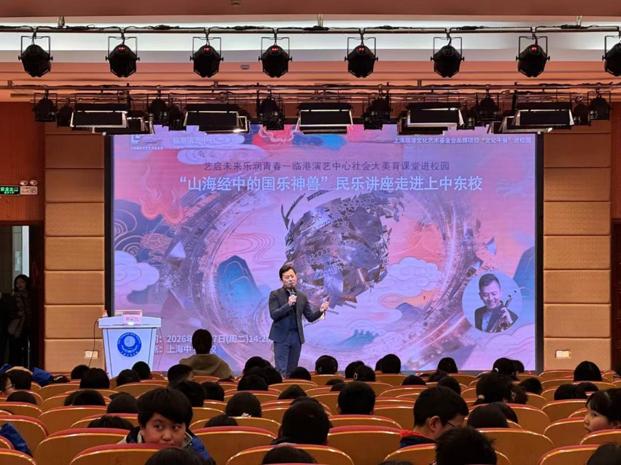 临港演艺中心还联合上海临港文化艺术基金会,策划推出“艺启未来 乐润青春——临港演艺中心社会大美育课堂进校园”活动。3月17日,该活动首场走进上中东校,胡晨韵为同学们讲解国乐与电子音乐的融合之道,分享《穿越·山海经》创作理念,现场演示唢呐演奏技巧,让青少年近距离感受国乐的魅力。