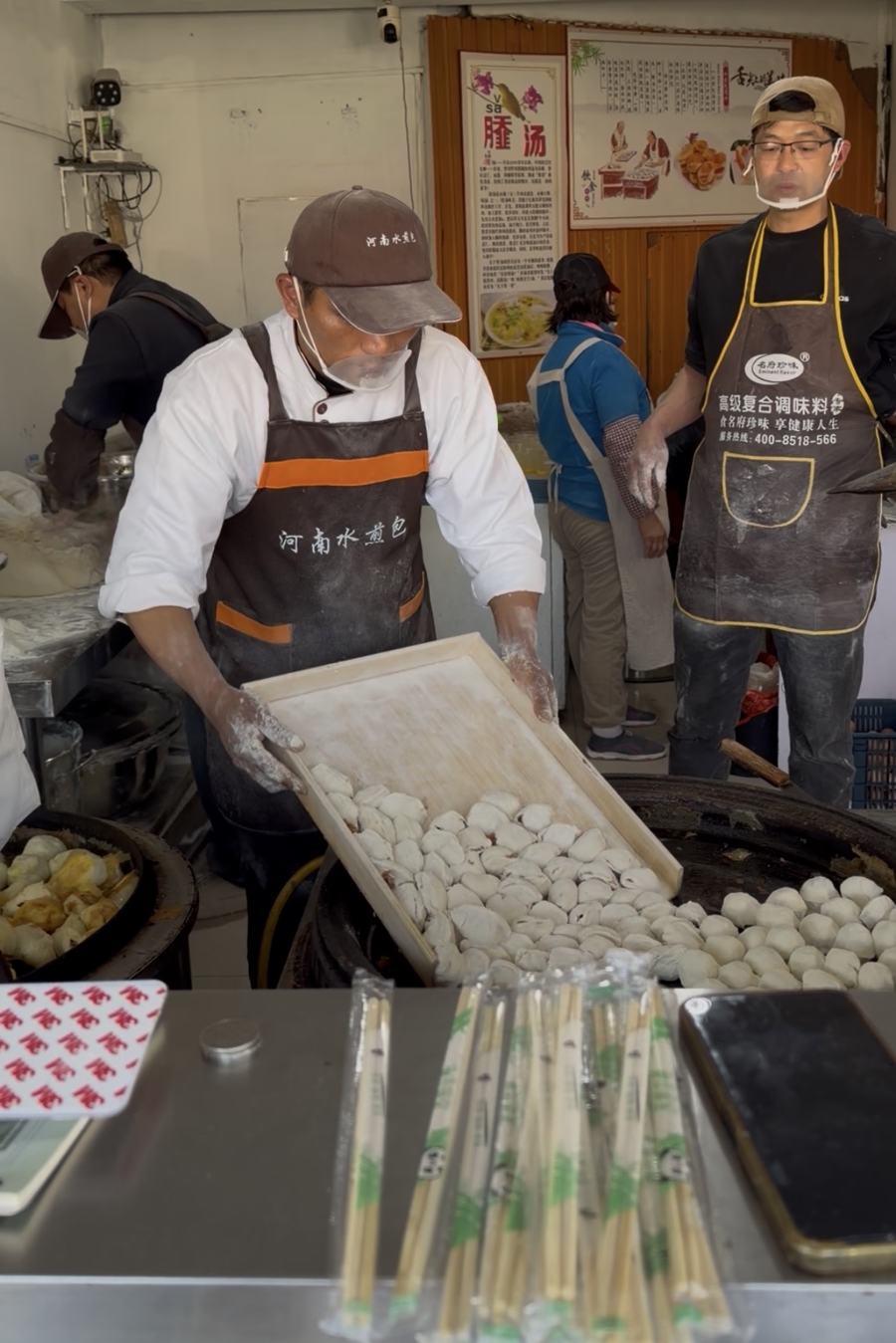 1988年出生的王凯阳是商丘市夏邑县韩道口镇人。这些年,他和妻子走南闯北,单在山西太原就待了十几年:街边摆摊卖过水煎包,也在工地打过工。那时就想过开一家水煎包门店,不过他发现,人流量大的好地方已经被自己的同村人占据得差不多了,“我们村子里干水煎包生意的特别多”。彼时,有老乡邀请他来上海,说“在这里卖水煎包还不错”。