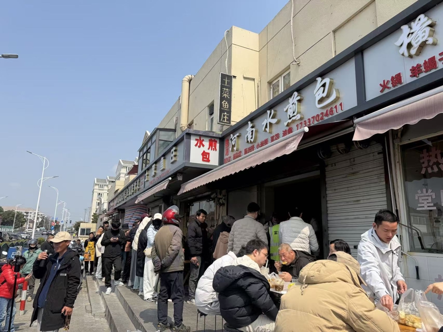 这家早餐店位于浦东新区康桥镇,爆火的起因是一次不经意的喊话。2月28日正月十二,网名为“小海漂”的老顾客因春节后见门店依然未营业,便在店门前拍视频催促:“卖早餐的河南大哥,你啥时候来?”没承想,却意外引来了一群网友走心地回应——有河南人科普称“河南一般认为过了十五才算过完年”;还有网友热心回复,“我打过电话了,老板说正月十六回”。经过一天的接力传播和发酵,视频播放量一夜之间突破千万,话题“被全网催开门的河南水煎包店”冲上热搜。很快,还在商丘老家的老板王凯阳被此起彼伏的电话声震懵了。在全网的热切期盼中,他和妻子两人终于在3月8日开门营业。